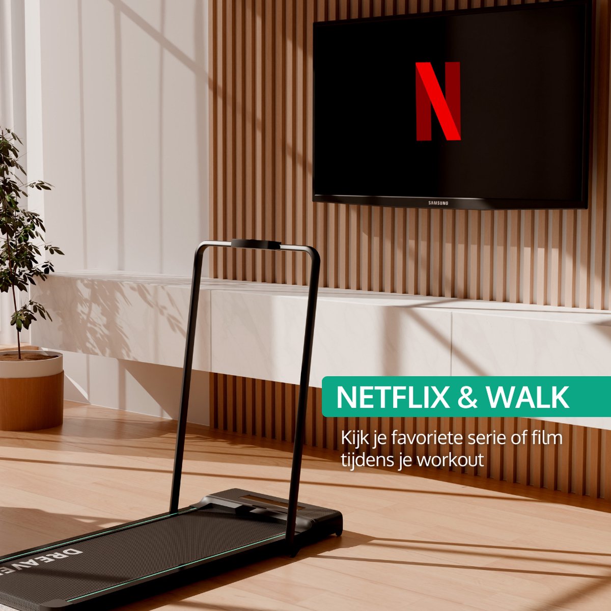 Dankzij de Dreaver - Loopband die volledig portable is, zet je overal in huis je loopband op. Zo neemt de loopband weinig ruimte in beslag en kun je met gemak overal je stappendoel halen voor die dag. In tegenstelling tot de normale loopband die vaak groot en zwaar is weegt de S340 loopband van Dreaver nog geen 25 kilo. Daarnaast vouw je deze loopband in een handomdraai op waardoor je de loopband gemakkelijk onder je bed of bank kunt schuiven.
